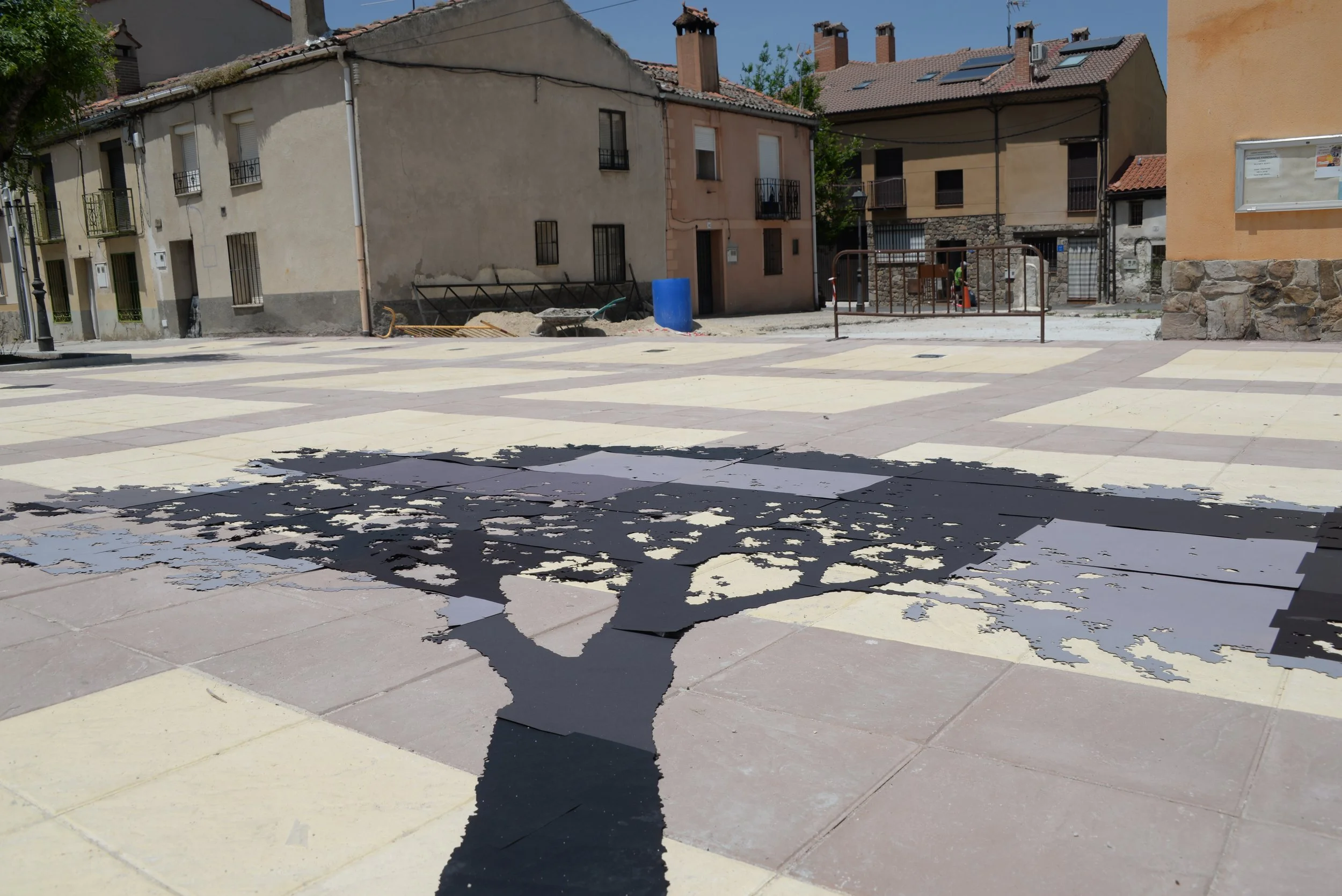Due to the remodeling of the square, the town council of this small village in inland Spain decided that the roots of the tree would lift the pavements and that this 40-year-old pine tree should be cut down.